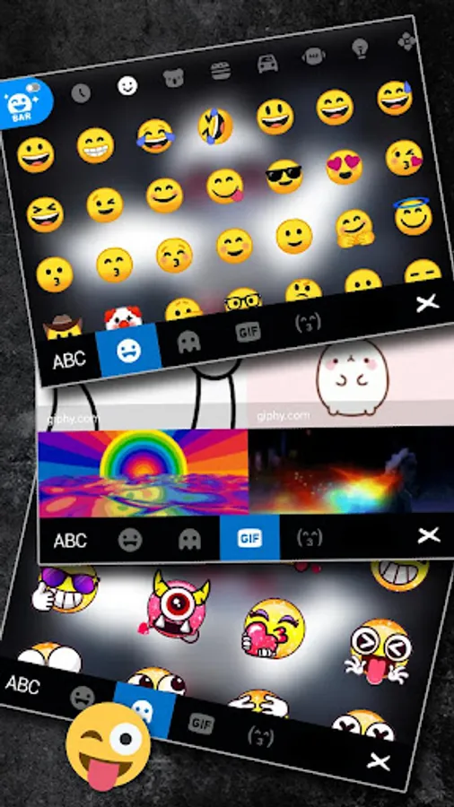 • Input thousands of emojis, dictionaries, GIFs, emoticons and stickers anywhere conveniently.