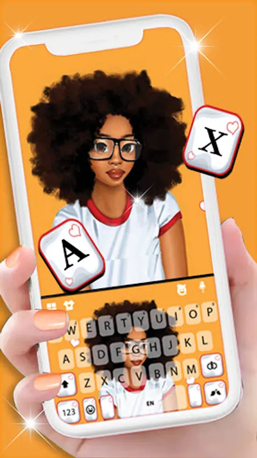 Cute Afro Girl Theme gives you the best keyboard background,fonts and emojis for free!