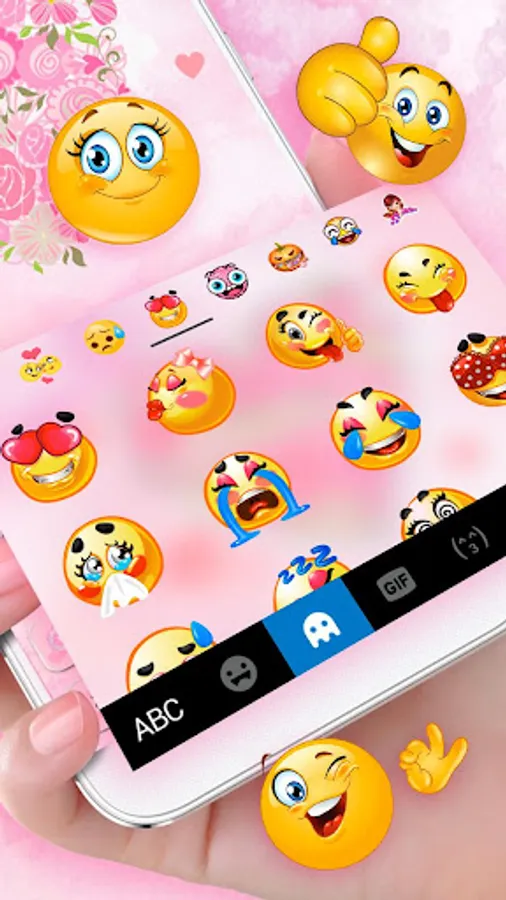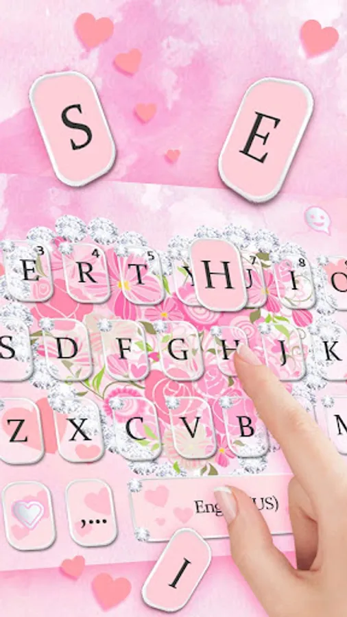 * Enjoy Diamond Pink Flora Heart Keyboard Theme with cute emoji and delicate fonts.