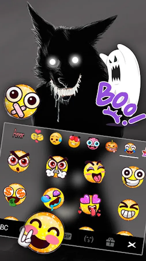 Dog Demon Smile Theme gives you the best keyboard background,fonts and emojis for free!