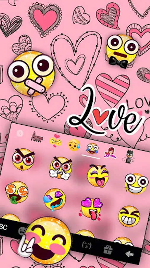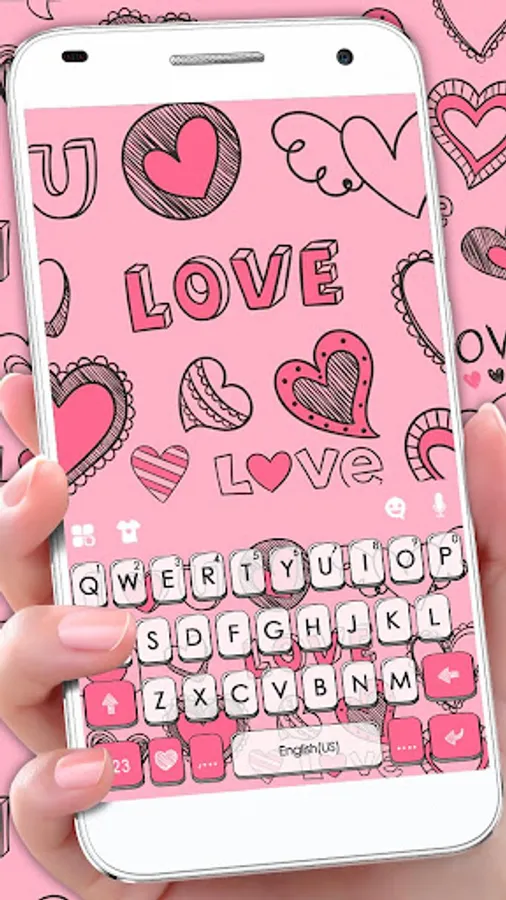 Doodle Pink Love Theme gives you the best keyboard background,fonts and emojis for free!