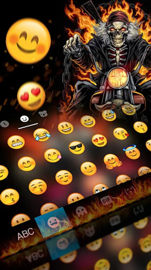 * Enjoy Fire Skull Rider Keyboard Theme with cute emoji and delicate fonts.