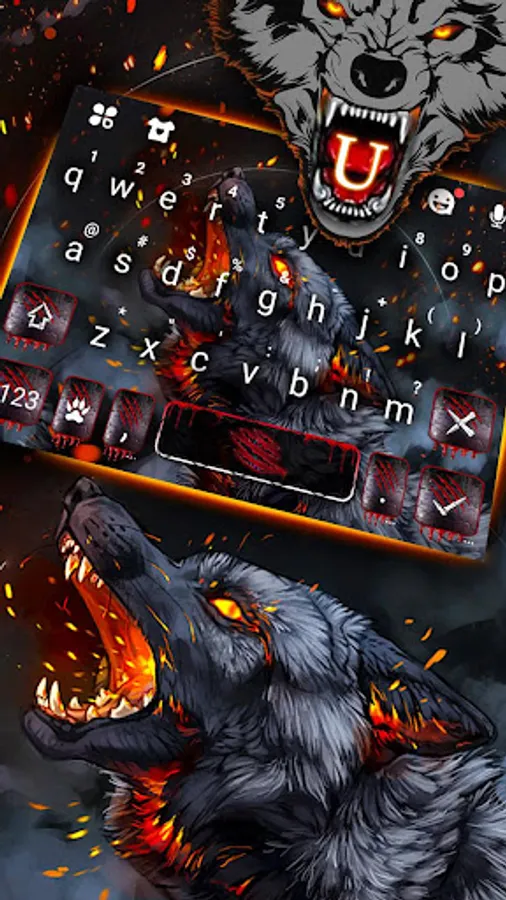 Flaming Wolf Keyboard Theme. Want your phone awesome?Let Flaming Wolf Keyboard Theme help you!Take the Flaming Wolf keyboard and have your splendid experience now!