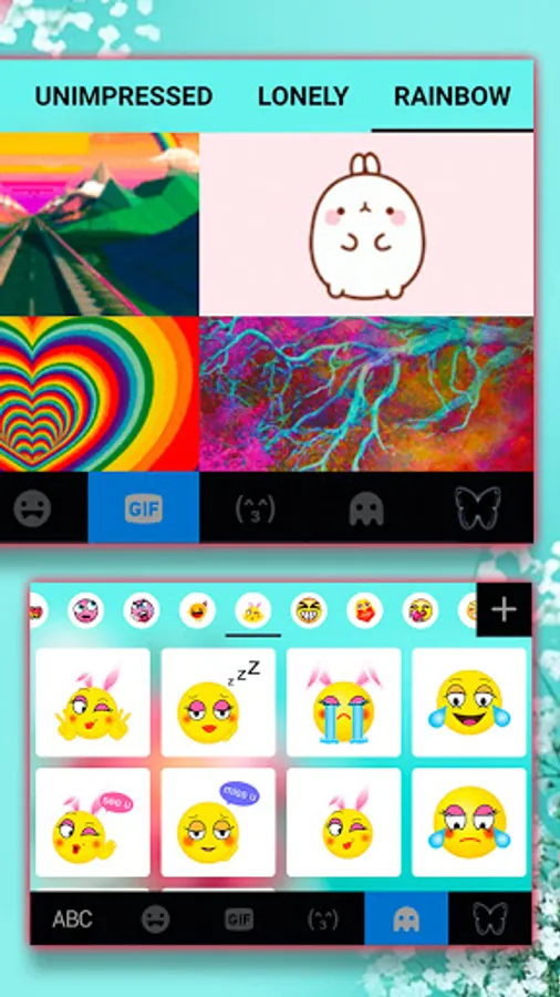 Floral Cyan Theme gives you the best keyboard background,fonts and emojis for free!