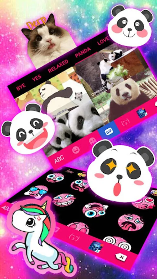 Galaxy Baby Panda Theme gives you the best keyboard background,fonts and emojis for free!