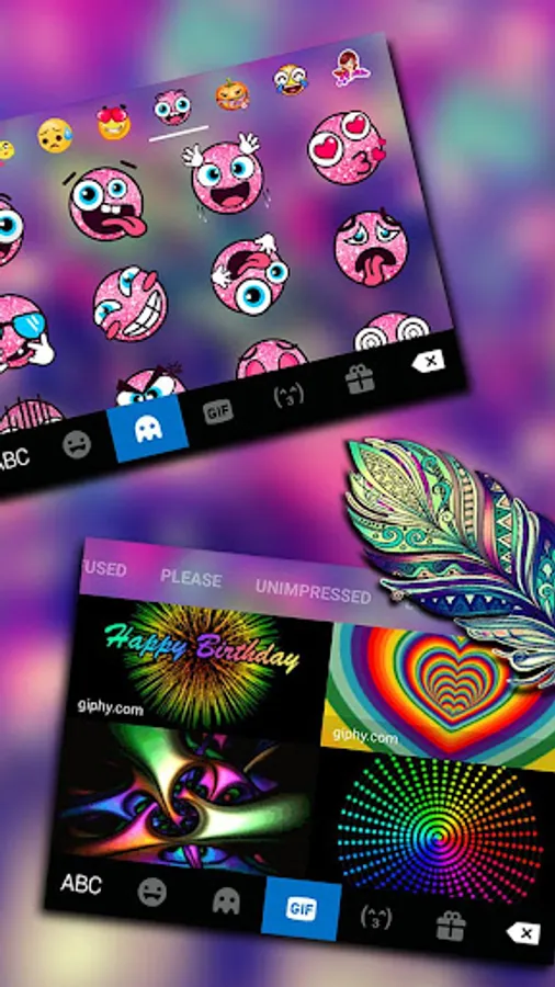 * Enjoy Galaxy Feather Keyboard Theme with cute emoji and delicate fonts.