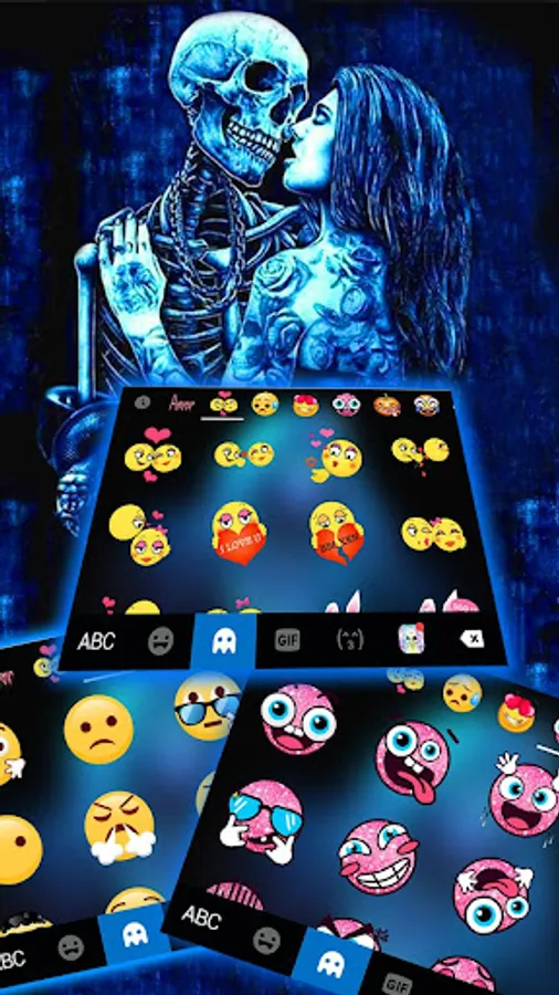 😍Ghost Lovers Kiss Keyboard is a smart & customized keyboard for android. It comes with the stylish keyboard background, fonts,emojis and stickers!