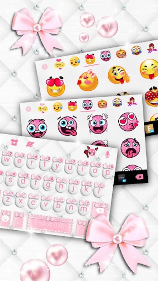 Girly Pink Bows Keyboard Theme. Want your phone awesome?Let Girly Pink Bows Keyboard Theme help you!Take the Girly Pink Bows keyboard and have your splendid experience now!