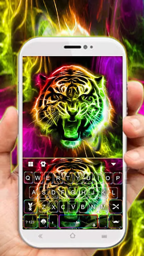 Install and decorate your keyboard with Neon Tiger Keyboard Theme now! No matter you love beautiful HD wallpaper or cool HD wallpaper, you will love this Neon Tiger Keyboard Theme deeply, because you can customize keyboard and change keyboard buttons for easily typing faster on a bigger keyboard.