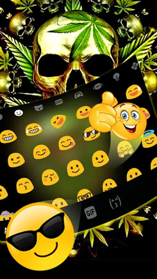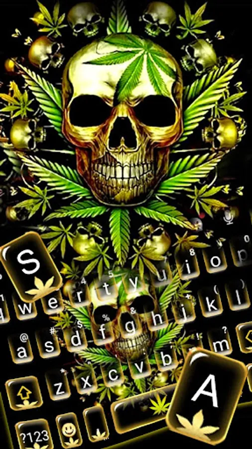 💚New Free Golden Skull Weed keyboard theme will give really new look & feel to your keyboard & text input, and make your Android device keyboard cool, cute and unique.