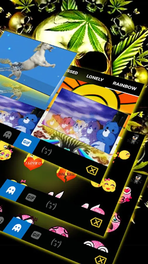 Add Golden Skull Weed Keyboard Theme in your phone! Let Golden Skull Weed Keyboard Theme show its unique charm, your phone can be really different with Golden Skull Weed Keyboard Theme. Feeling attractive now? Install Golden Skull Weed Keyboard Theme and apply it now!