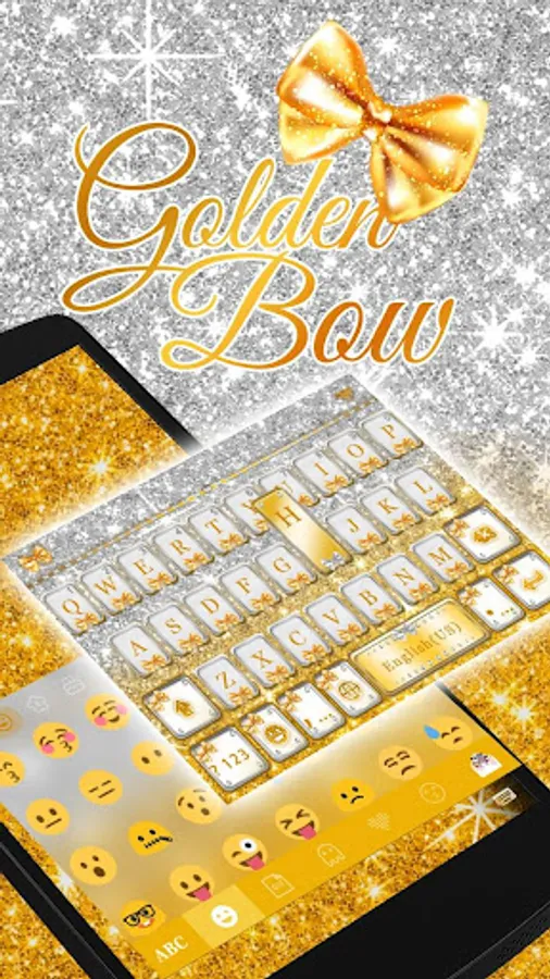 Golden Bow Keyboard Theme. Want your phone awesome?Let Golden Bow Keyboard Theme help you!Take the Golden Bow keyboard and have your splendid experience now!
