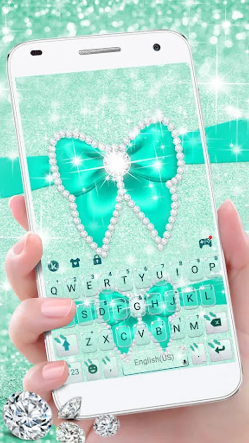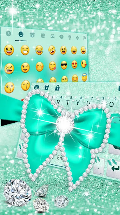 Add Green Diamond Bow Keyboard Theme in your phone! Let Green Diamond Bow Keyboard Theme show its unique charm, your phone can be really different with Green Diamond Bow Keyboard Theme. Feeling attractive now? Install Green Diamond Bow Keyboard Theme and apply it now!
