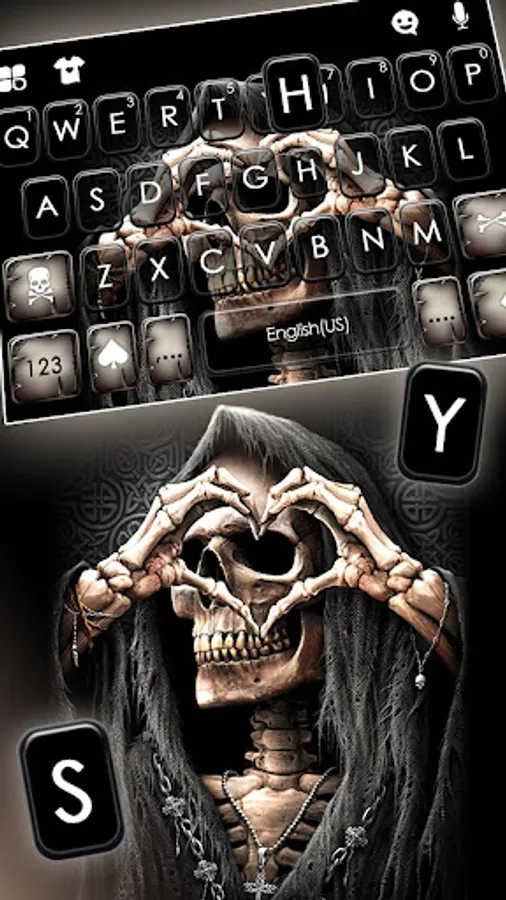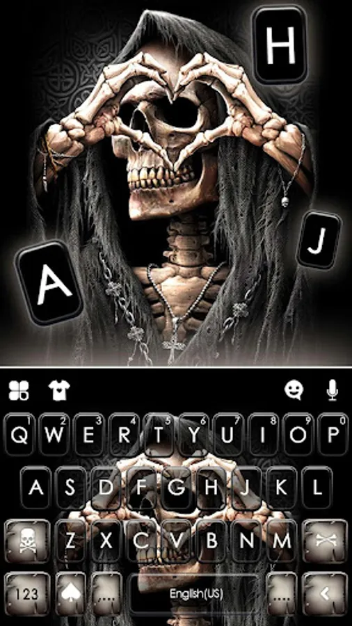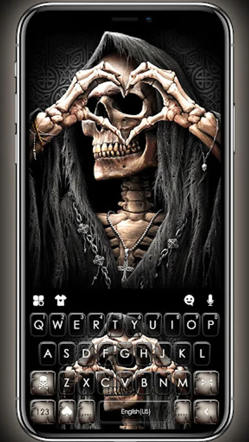 🙌Feeling attractive now? Install Grim Reaper Skull Love Keyboard Theme and apply it now!