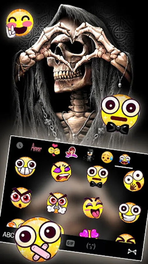 😍Grim Reaper Skull Love Keyboard is a smart & customized keyboard for android. It comes with the stylish keyboard background, fonts,emojis and stickers!