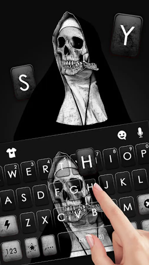 Horror Skull Nun Theme gives you the best keyboard background,fonts and emojis for free!