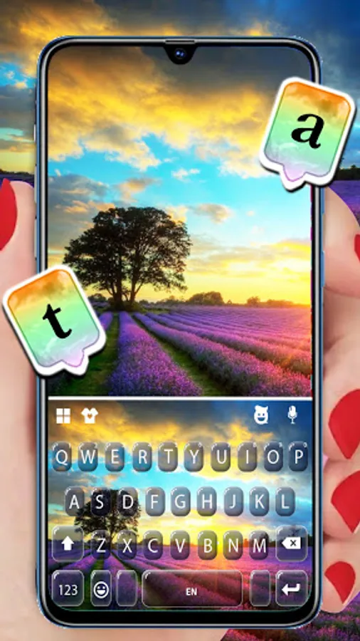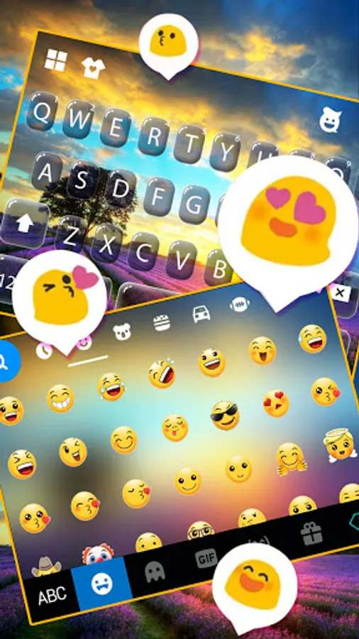 Lavender Sunset Theme gives you the best keyboard background,fonts and emojis for free!
