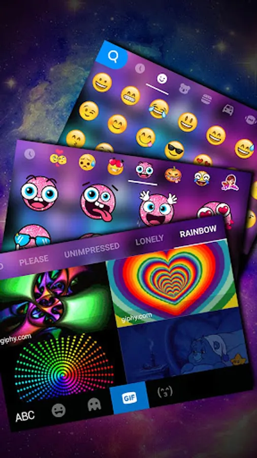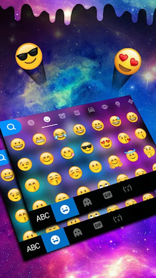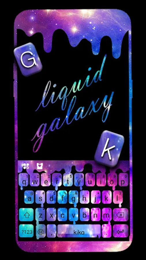 * Enjoy Liquid Galaxy Droplets Keyboard Theme with cute emoji and delicate fonts.