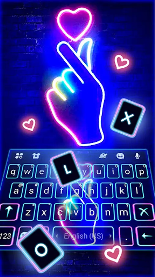 • Bravo! You have installed and applied Love Heart Neon Keyboard Theme;