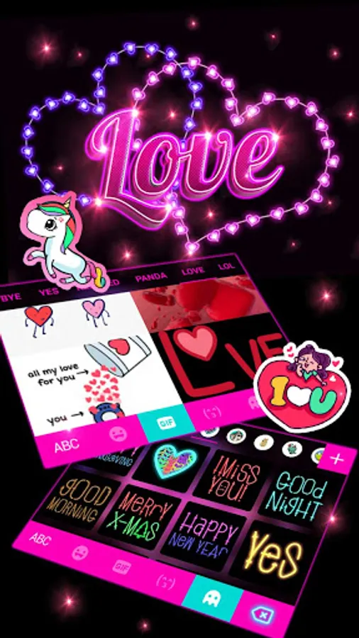 Love Neon Lights Theme gives you the best keyboard background,fonts and emojis for free!