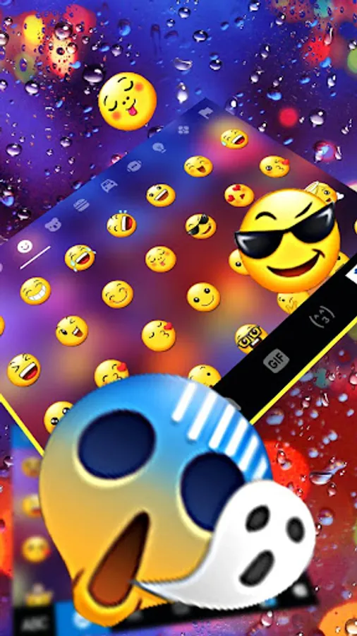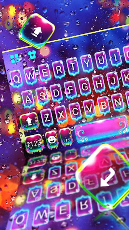 Luminous Neon Raindrops Theme gives you the best keyboard background,fonts and emojis for free!