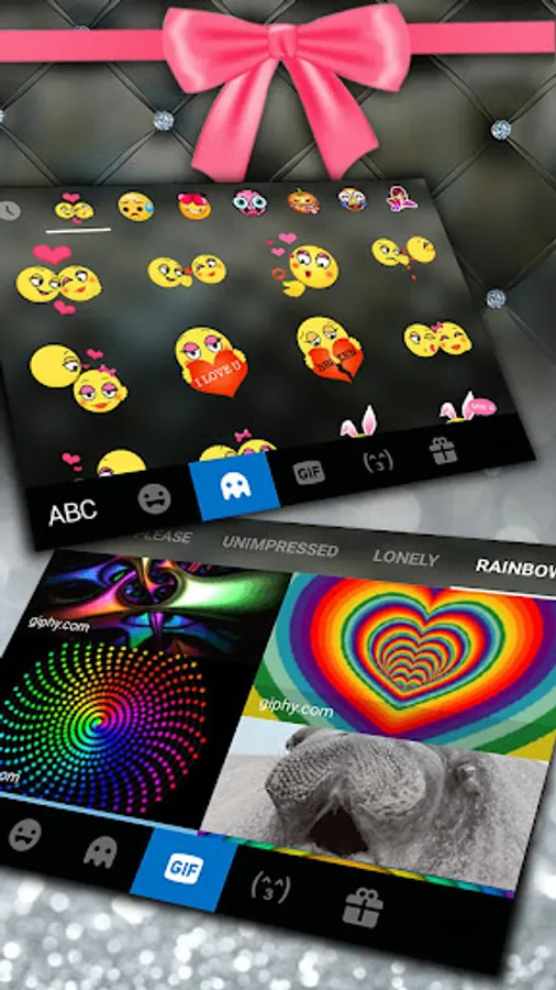 * Enjoy Luxury Bowknot Keyboard Theme with cute emoji and delicate fonts.