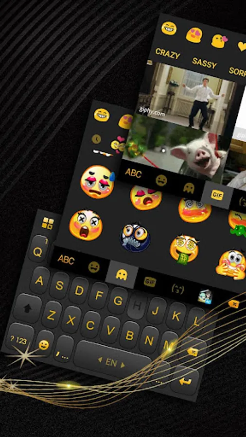 * Enjoy Luxury Golden Black Keyboard Theme with cute emoji and delicate fonts.
