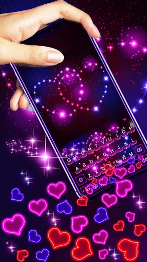 👍Install our keyboard with Neon Hearts Gravity theme now for free!👍