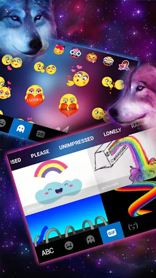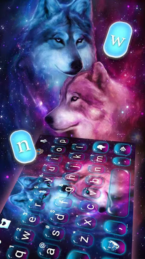 Neon Wolf Galaxy Theme gives you the best keyboard background,fonts and emojis for free!