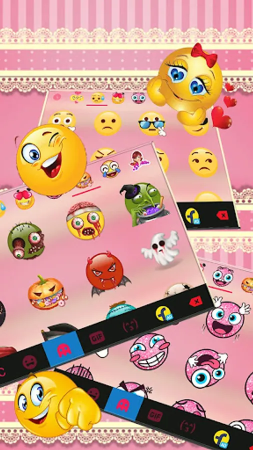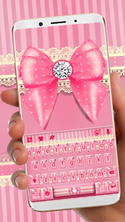 Pink Bowknot Lace Theme gives you the best keyboard background,fonts and emojis for free!