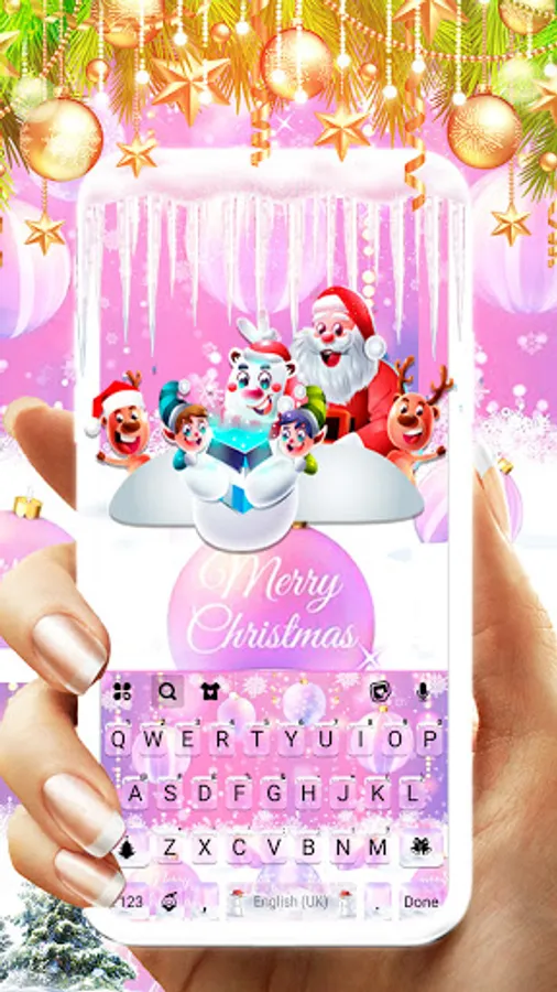 Pink Merry Christmas Theme gives you the best keyboard background,fonts and emojis for free!