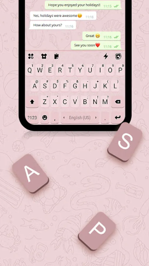 😍Get Pink SMS Keyboard Theme, grab the chance to make your phone more stylish and trendy than ever before! This theme helps you personalize your Android device with amazing background🎨, popular fonts✏️, funny emojis😋 and awesome sounds🎵, at the same time, autocorrect mistyping and next word prediction is also necessary! Take the Pink SMS keyboard and have your wonderful experience now!😘