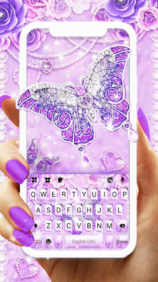 Purple Lux Butterfly Theme gives you the best keyboard background,fonts and emojis for free!