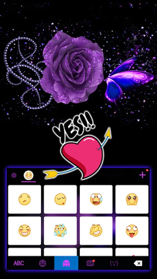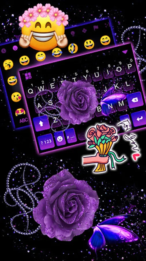 Purple Rosy Black Theme gives you the best keyboard background,fonts and emojis for free!