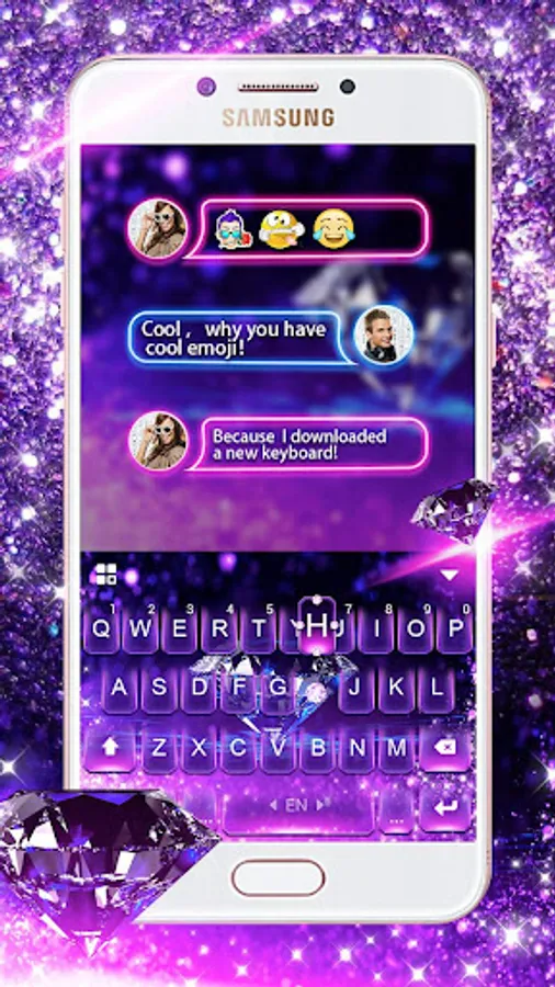 Luxury Diamond Theme gives you the best keyboard background,fonts and emojis for free!