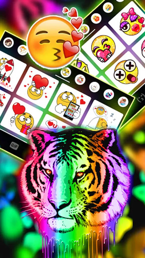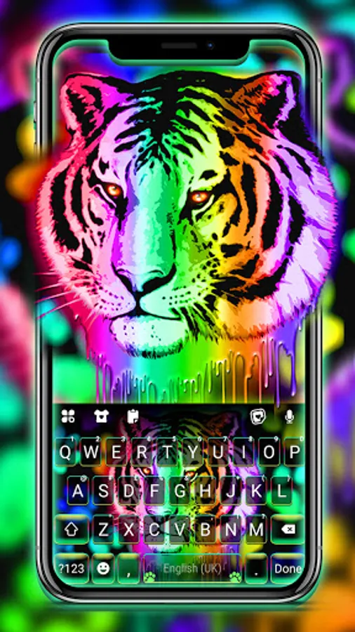 Rainbow Neon Tiger Theme gives you the best keyboard background,fonts and emojis for free!