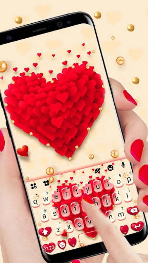 Red Valentine Hearts emoji keyboard covering over 150 languages, 6000+ Colorful Themes and DIY ThemesIf you love funny keyboard emojis and different keyboard background, keyboard fonts, wallpaper, sounds and layout, the Red Valentine Hearts theme is your cup of tea.