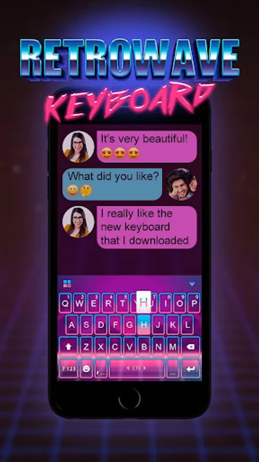 💋If you are looking for new keyboard themes to personalize your Android device with Retrowave Keyboard Theme is going to be perfect for you! Try this keyboard and enjoy the smart typing now! This keyboard theme will make your phone look amazing! Start enjoying this amazing new way to personalize your device! Take the Retrowave keyboard and have your splendid experience now!