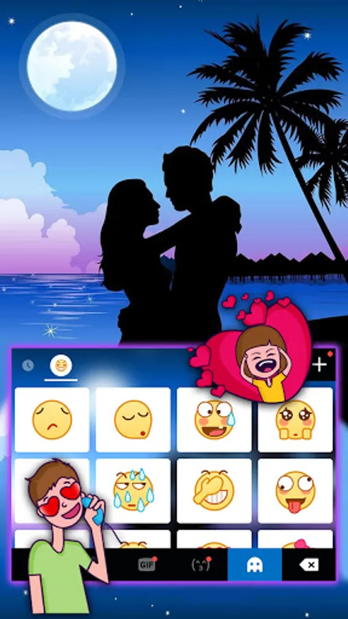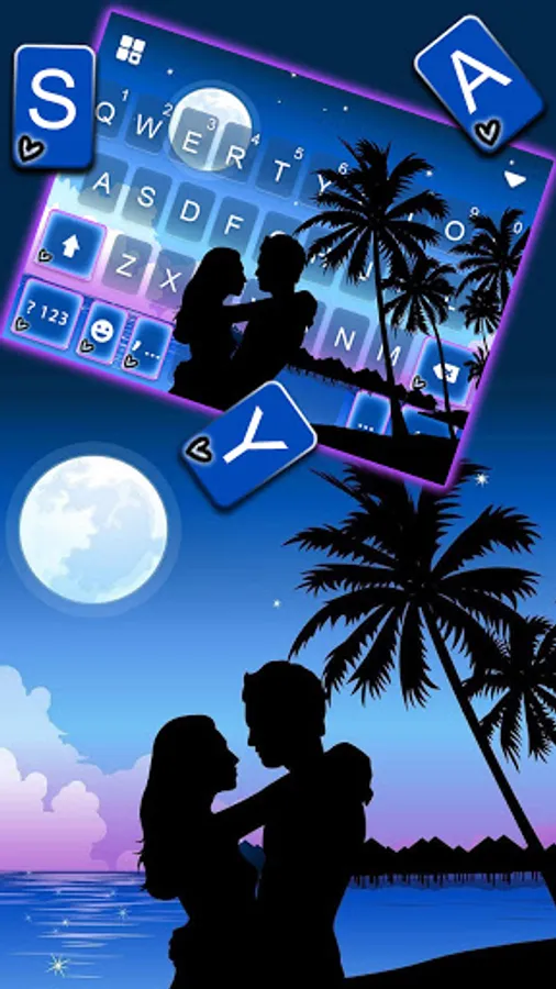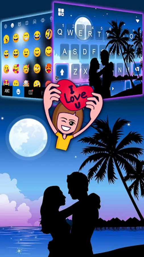 Romantic Beach Love Theme gives you the best keyboard background,fonts and emojis for free!