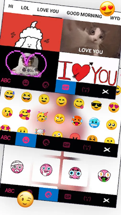 • Latest trending emojis: input thousands of emojis, GIFs, emoticons, and stickers anywhere conveniently