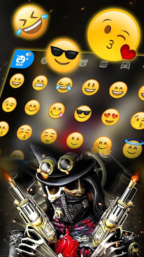 Skull Gun Keyboard Theme. Want your phone awesome?Let Skull Gun Keyboard Theme help you!Take the Skull Gun keyboard and have your splendid experience now!