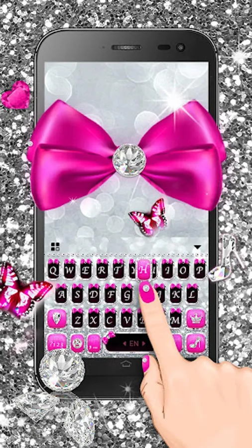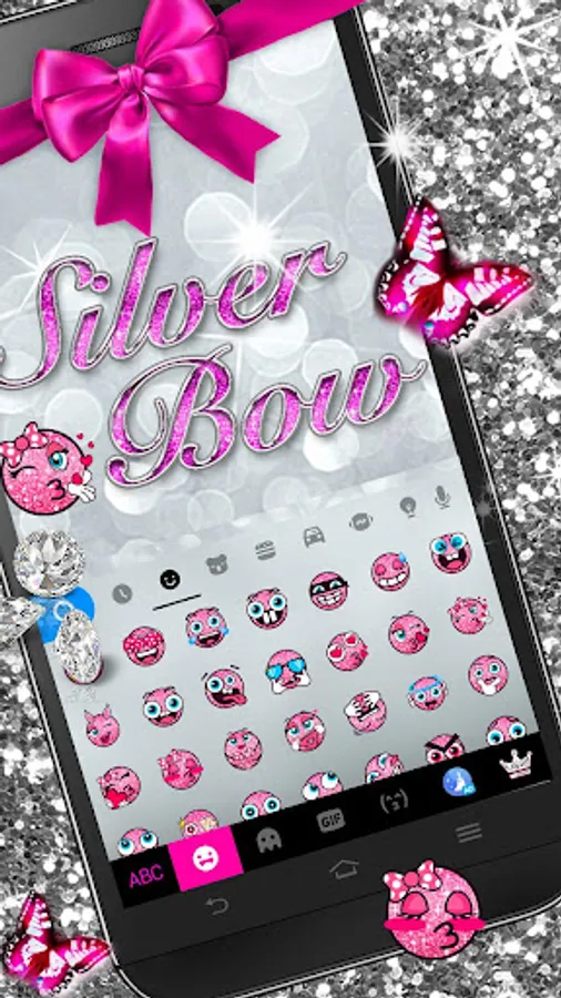 Silver Bowknot Keyboard Theme will bring your phone a new look. You’ll fall in love with this Silver Bowknot Keyboard Theme for sure. Silver Bowknot Keyboard Theme will let a plain keyboard into a beautiful and unique one. Decorate your phone with Silver Bowknot Keyboard Theme now!