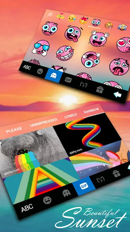 * Enjoy Sunset Holiday Seaside Keyboard Theme with cute emoji and delicate fonts.