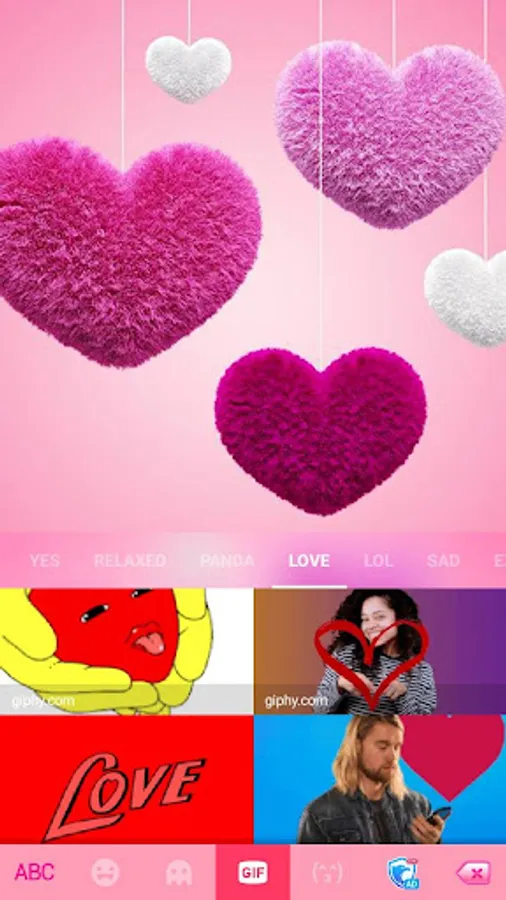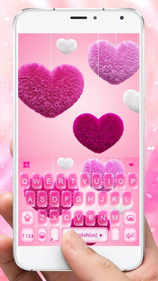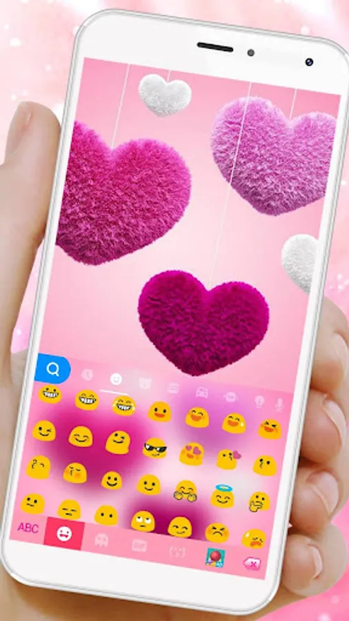 * Enjoy Valentine Plush Heart Keyboard Theme with cute emoji and delicate fonts.