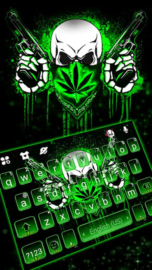💚New Free Weed Guns Skull keyboard theme will give really new look & feel to your keyboard & text input, and make your Android device keyboard cool, cute and unique.