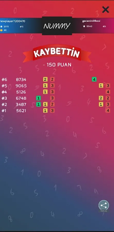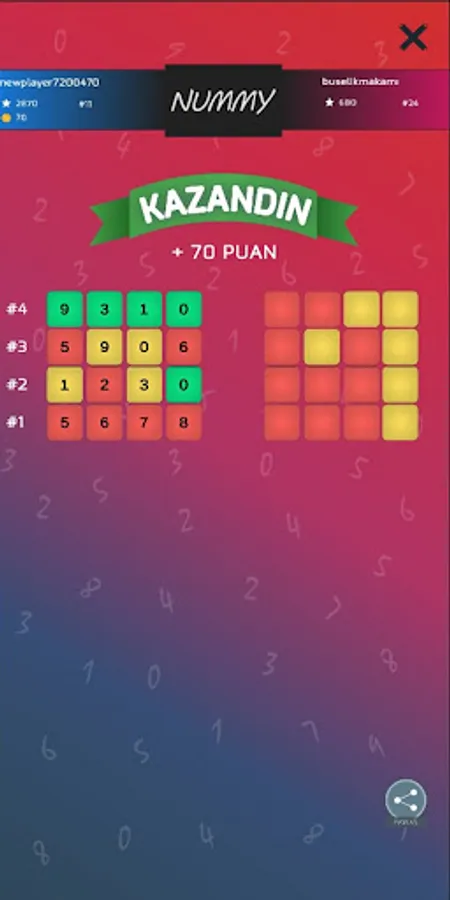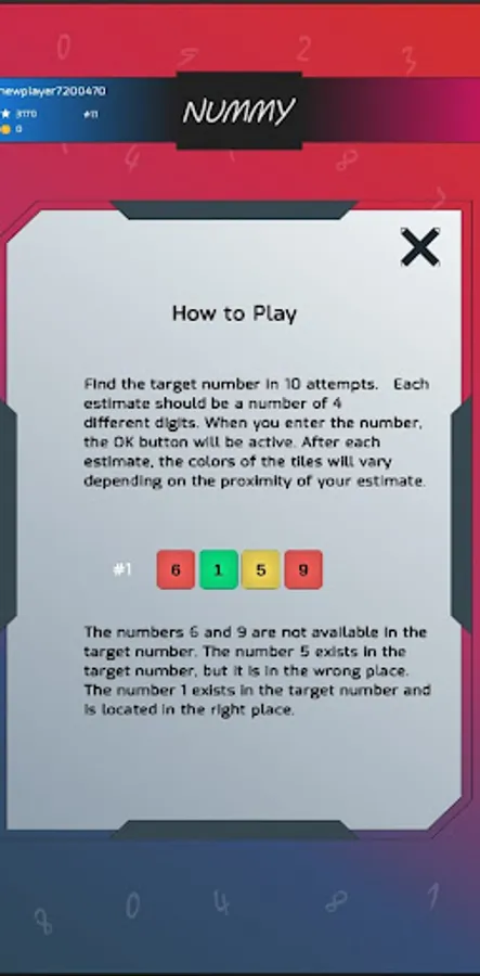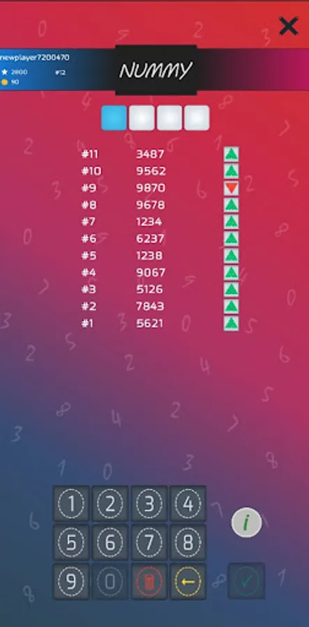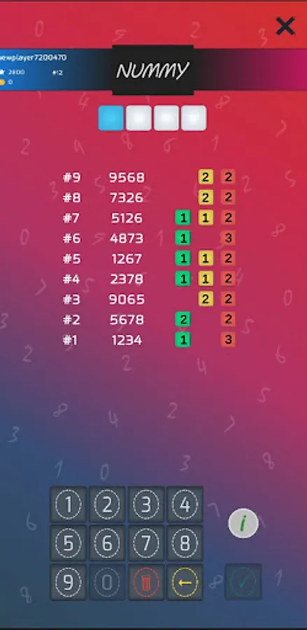 Nummy is a delightful game that will surprise you with its entertaining number puzzles and give you the opportunity to make new friends within its vibrant gaming community! Challenge yourself in single-player mode, where you'll push the limits of your mind to solve intriguing puzzles and find the correct numbers in record time. As you break your own records, you'll be able to share your achievements and compete against other players.