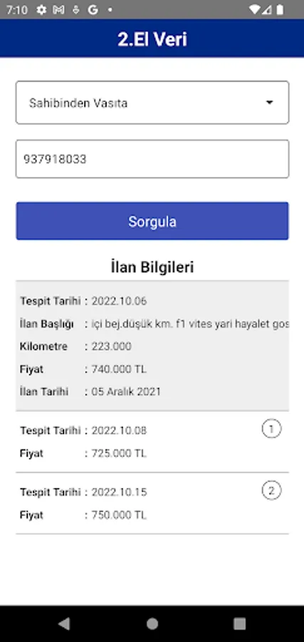 Real Estate is the only application where you can see the price history of car-car ads, information changes such as title-km.