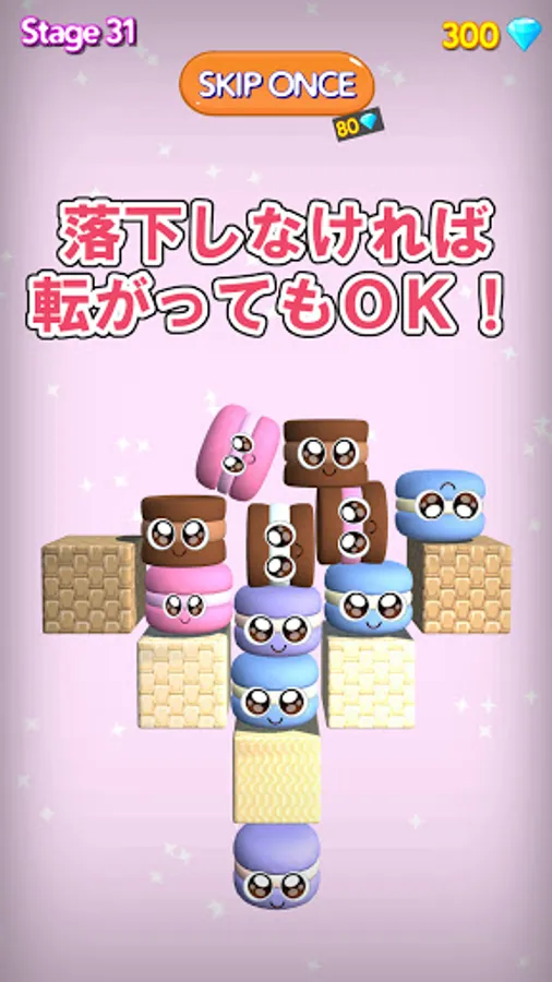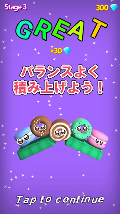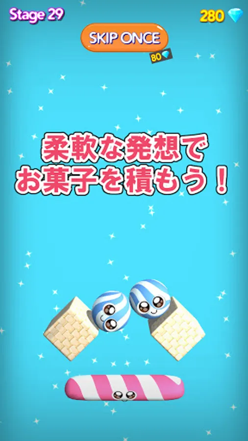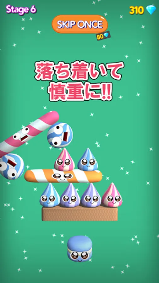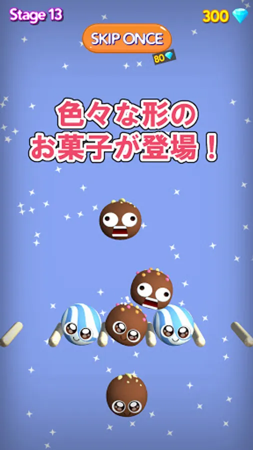 "Poppin Sweets Poppin Sweets" is a puzzle game that stacks sweets and keeps the balance for 5 seconds.