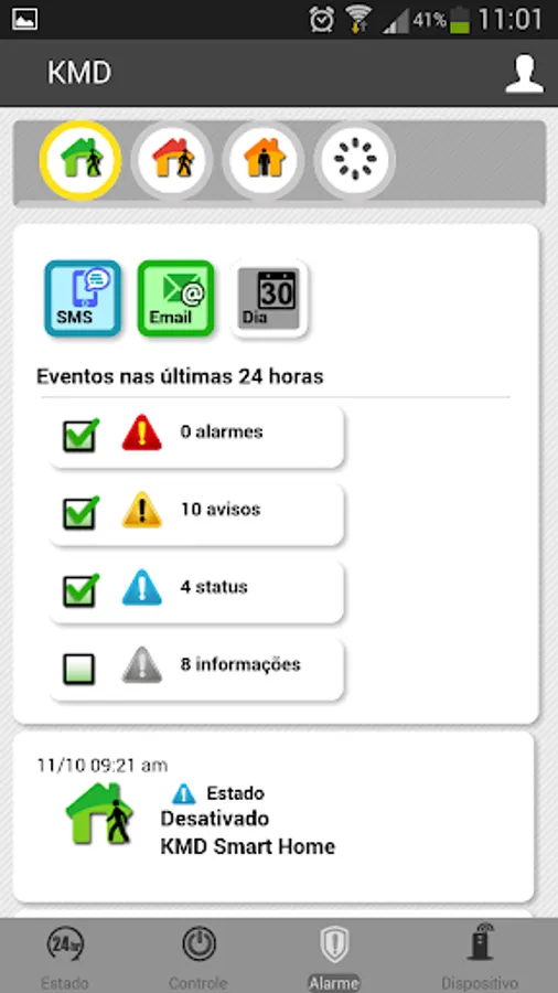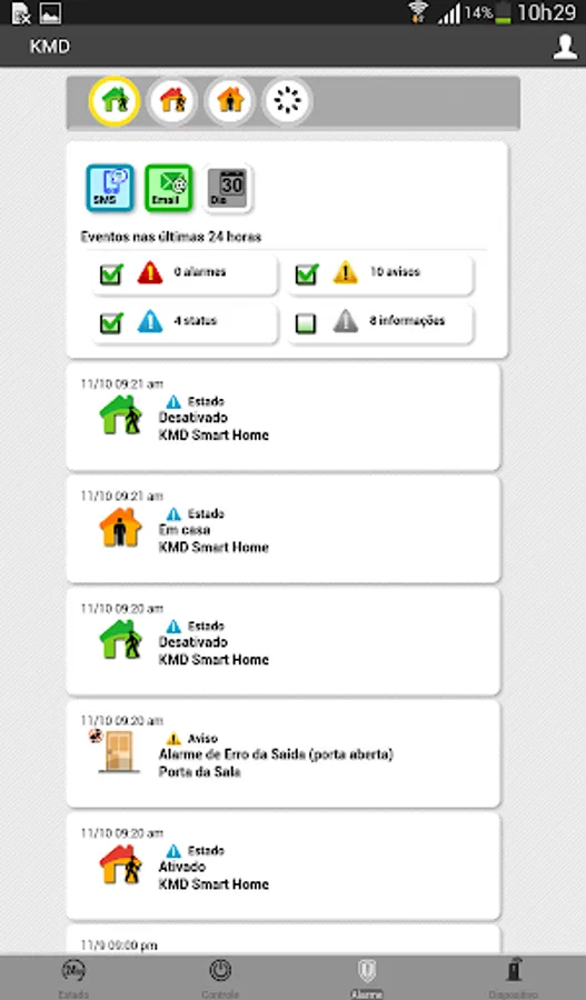 Through this app you can set the control panel; on / off control panel (remote control); receive notifications of devices / sensors; view graphs of some sensors (eg, temperature); enable / disable some devices; set phone numbers to receive SMS; view IP cameras images; etc.