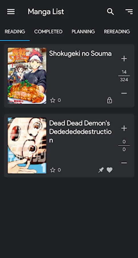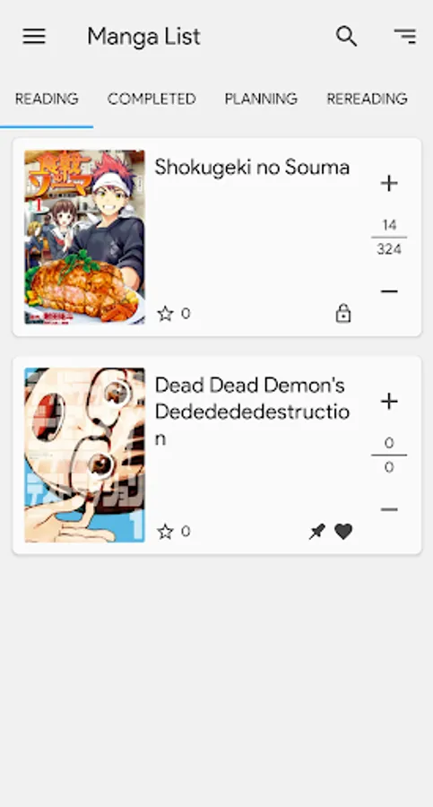 Quickly search for manga and add them to your list any time you get a new recommendation.